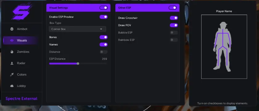 - Prioridad de puntería: prioridad de puntería del bot (hueso/FOV) Superposiciones visuales